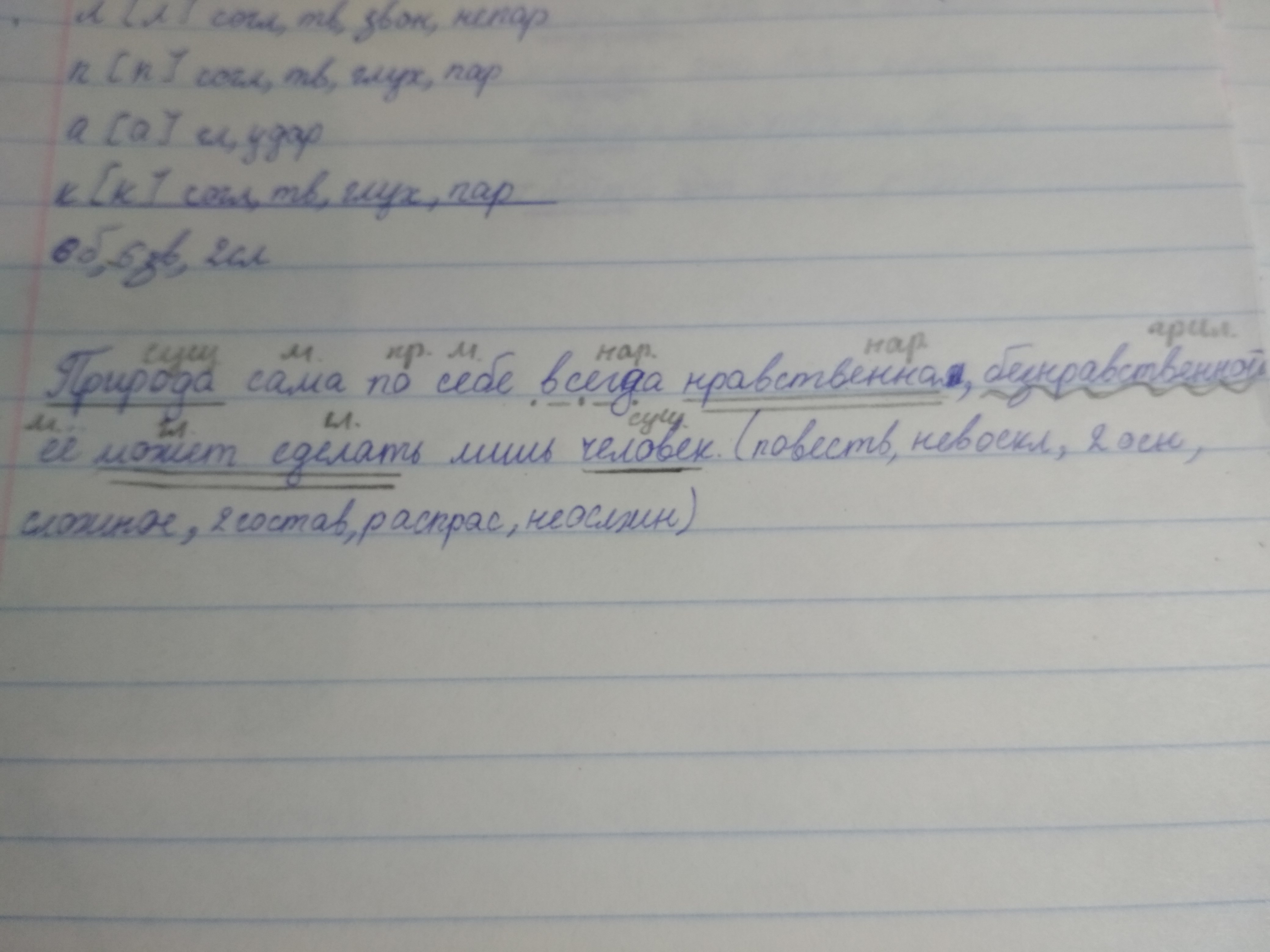 Природа сама по себе всегда нравственна, безнравственной её может сделать лишь человек. Синтаксический разбор предложения срочно!!