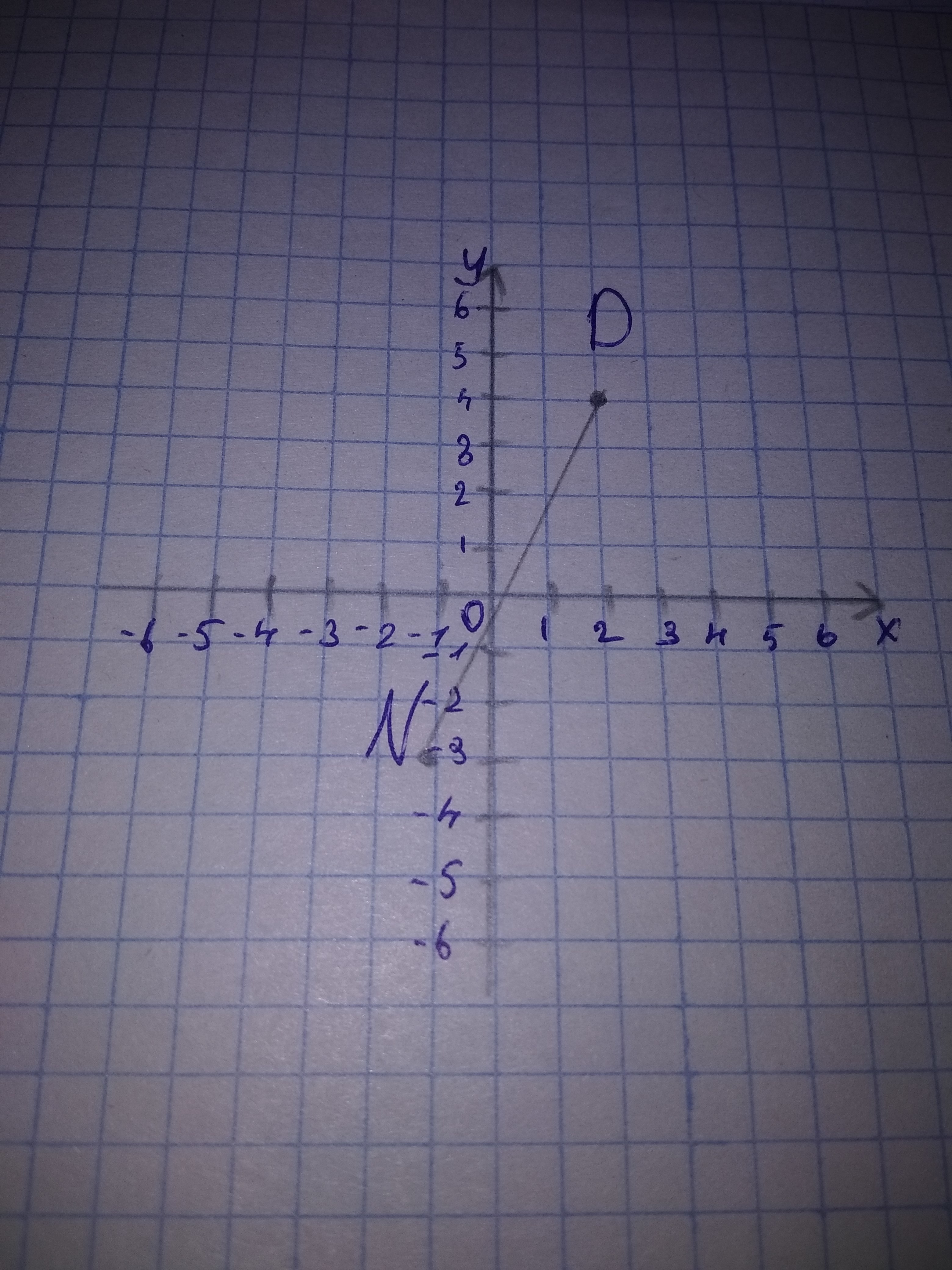 Отметьте на координатной плоскости точки D(2;4) и N(-3;-1). Проведите отрезок DN. Найдите координаты точки пересечения отрезка DN с осью абсцисс.