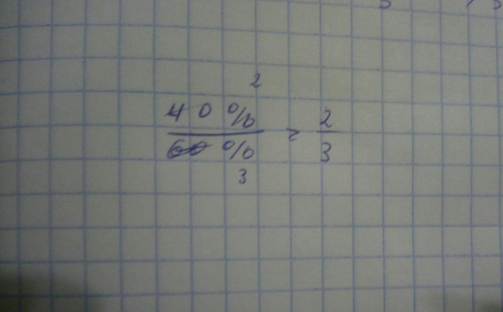 В пенале находятся ручки и фломастеры. Число ручек состовляет 40%. Найдите отношения числа ручек в пенала к числу фломастеро в нем.