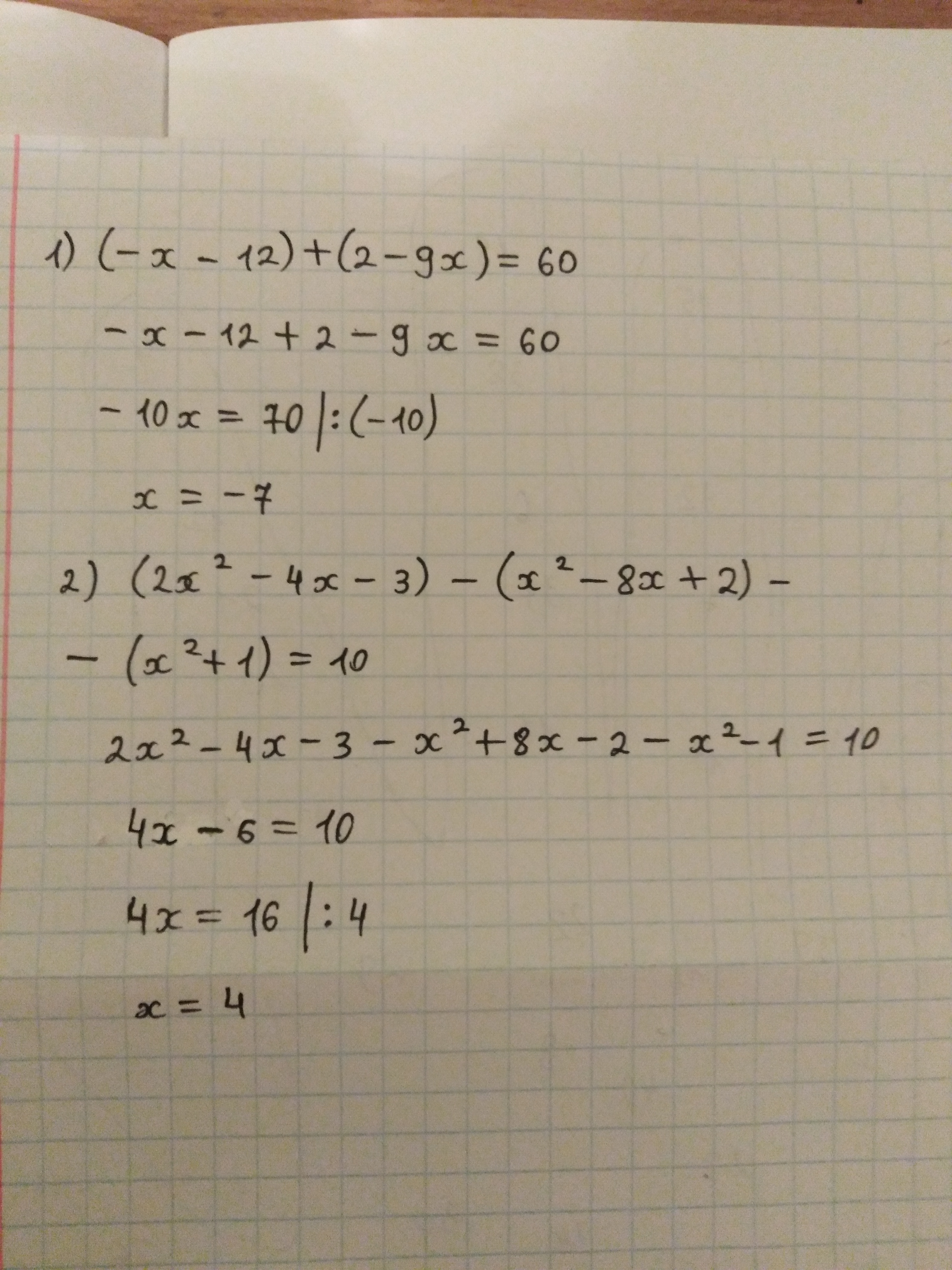 2) (2x^2-4x-3)-(x^2-8x+2)-(x^2+1)=10
