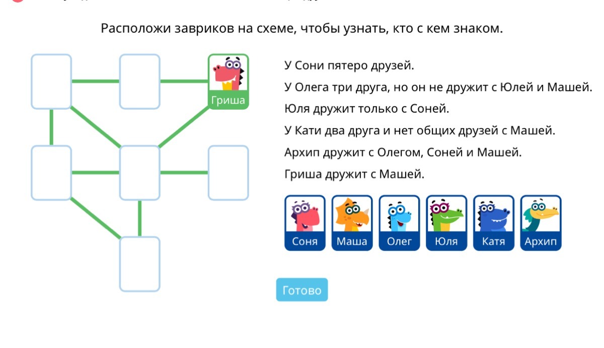 Верхняя строчка- Архип, Маша, Гриша. Средняя строчка- Олег, Соня, Юля. Нижнее имя- Катя