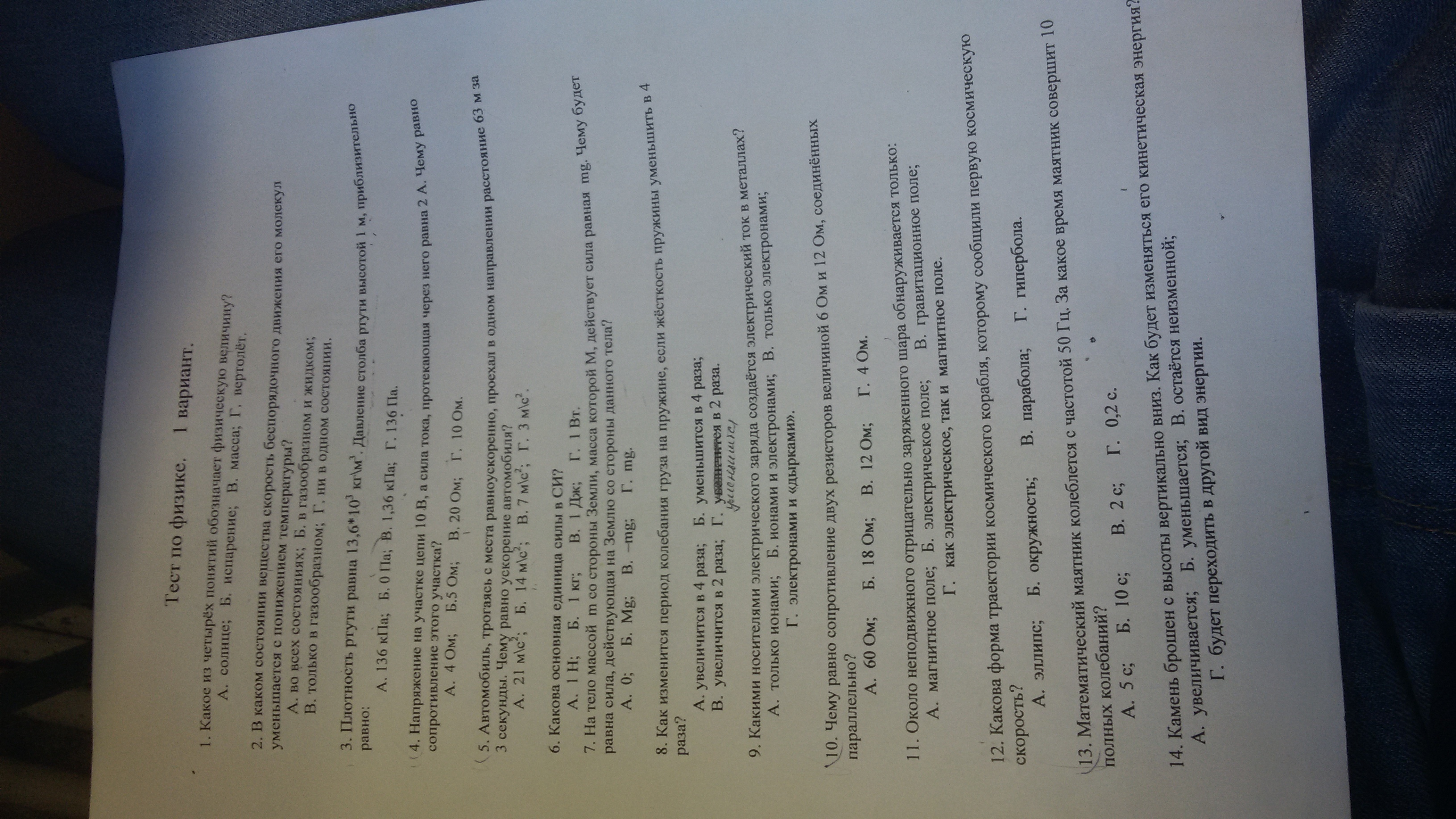 8). T = 2П√m/k ; следовательно,если k уменьшить в 4 раза, то период колебаний увеличится в 2 раза . ответ: В.