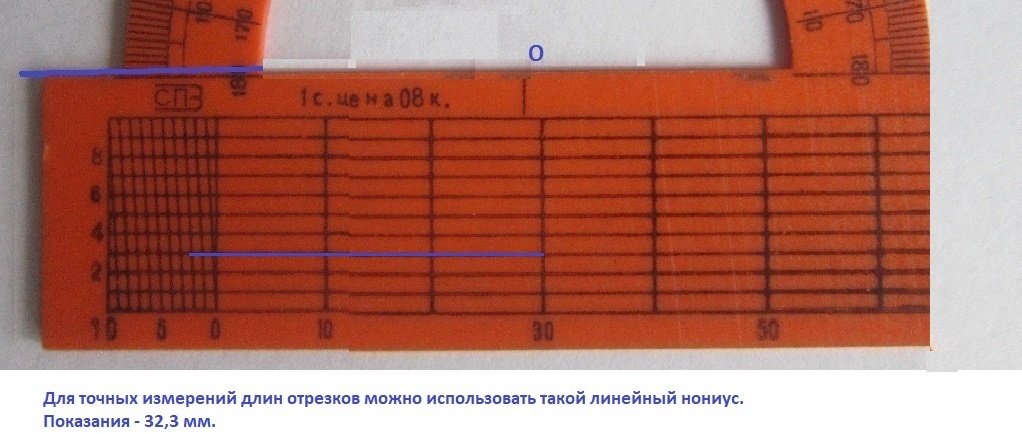 Для измерения используем циркуль и нониус на транспортире.