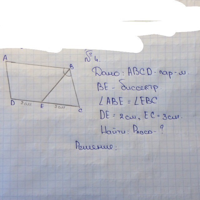 ∠EBC=∠BEC⇒ΔBCE-равнобедренный, значит BC=3см