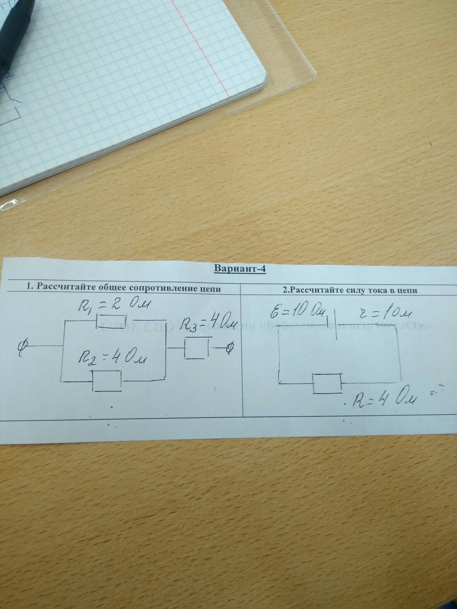 1. Параллельно: R1,2=2*4/(2+4)=8/6=1.33 Ом, последовательно с R3: Rобщ=1.33+4=5.33Ом