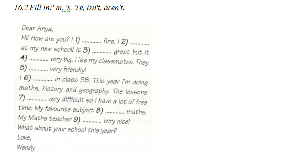 1) I'm 2) I'm 3) 's 4) isn't 5) 're 6) I'm 7) aren't 8) 's 9) 's