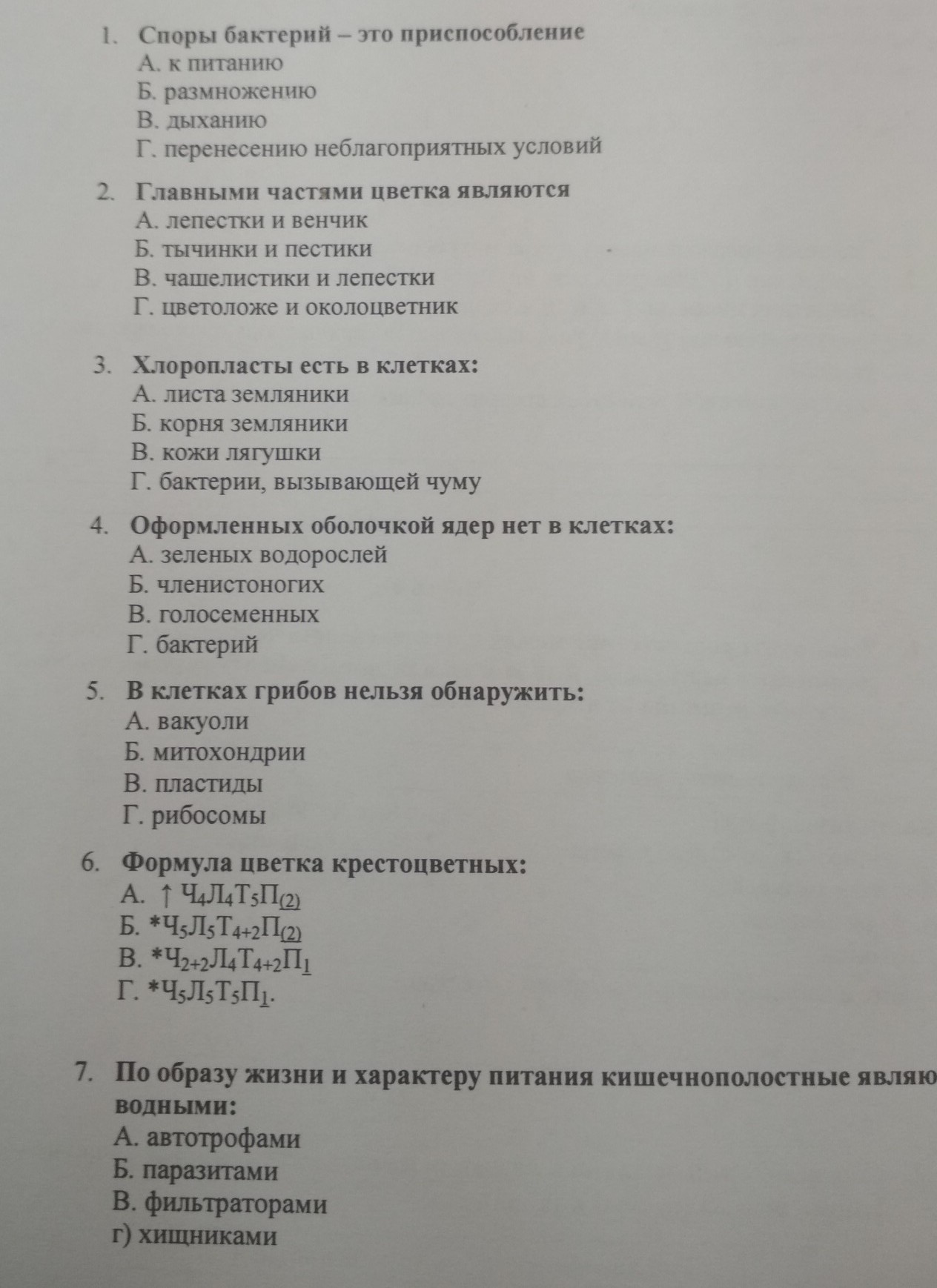 1) г 2) б, но не уверена 3) а 4)г 5)а 6)в 7)г