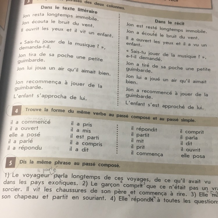 4. Trouve la forme du meme verbe au passe compose et au passe simple.