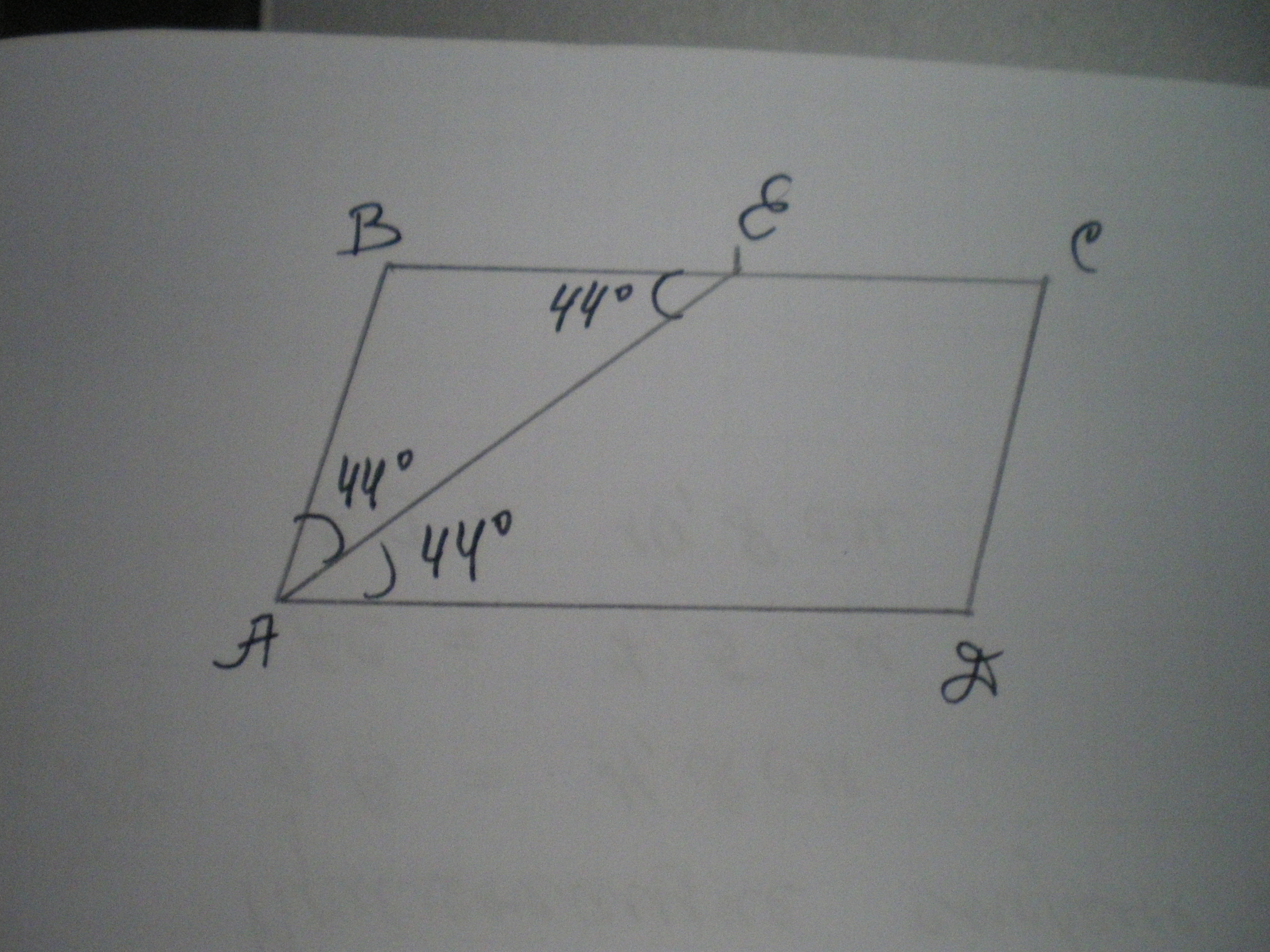 ∠ВАД=∠ВАЕ+∠ЕАД=44+44=88°
