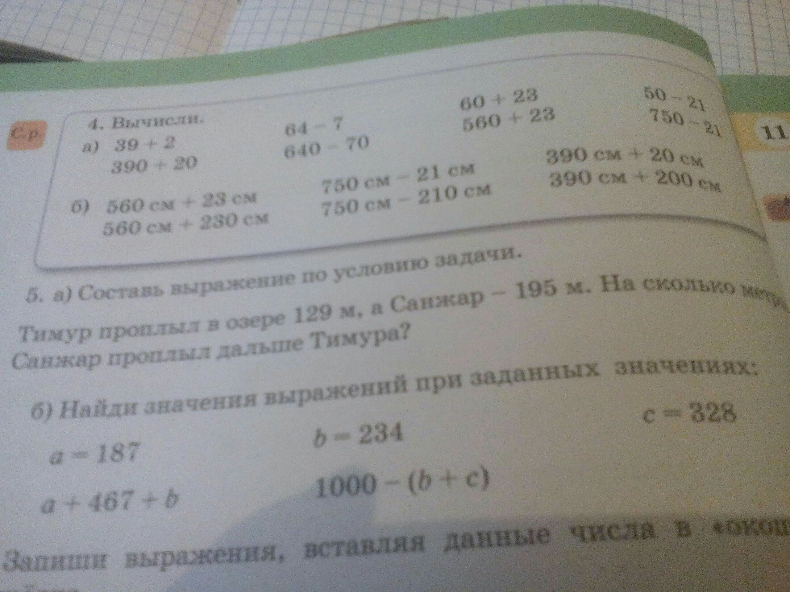 А) 195-129=66 (м) - на столько метров Санжар проплыл дальше Тимура
