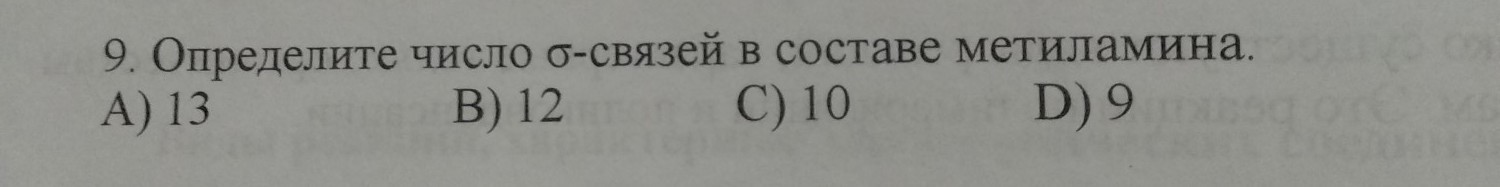 Пожалуйста, помогите. Определите число о-связей в составе метиламина.