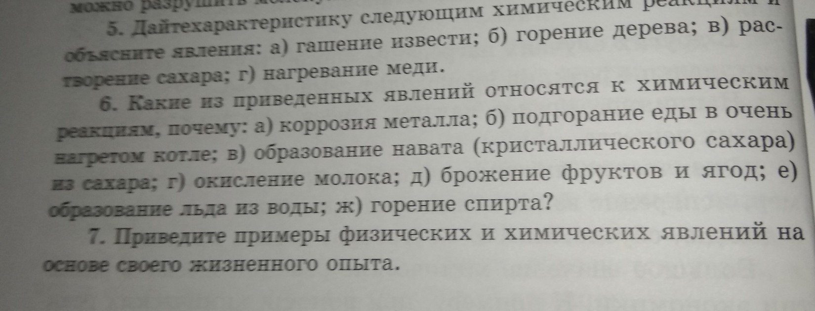 7)Химическое явление - гашение пищевой соды уксусом, физическое явление - растворение сахара в чае.