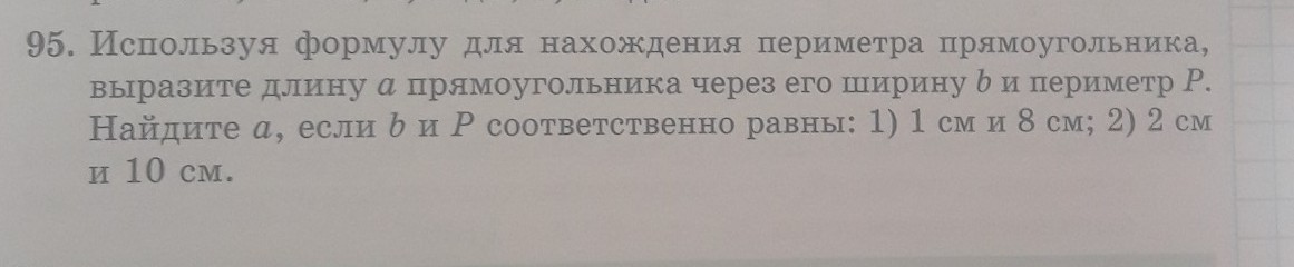1) в = 1см и Р = 8см ⇒ а = (8 - 2*1) / 2 = 6 / 2 = 3 см;
