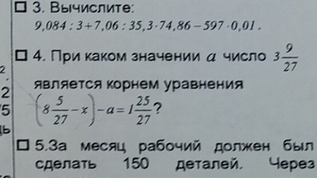 подставляем 3 целых 9/27 за X и получается, что A равно 8 5/27-3 9/27-1 25/27=2 25/27