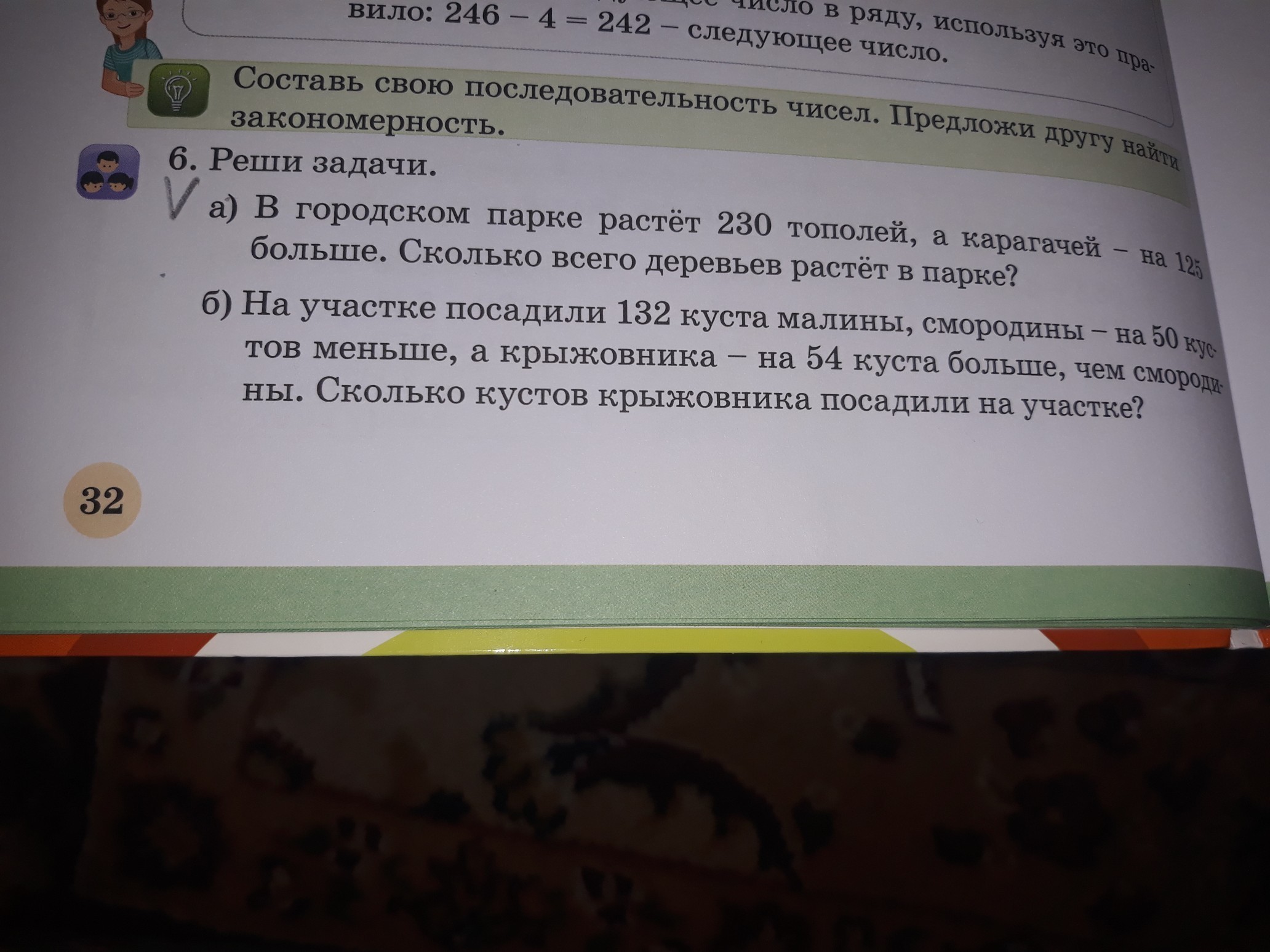 1) 230+125=355(д.)- карагачей.