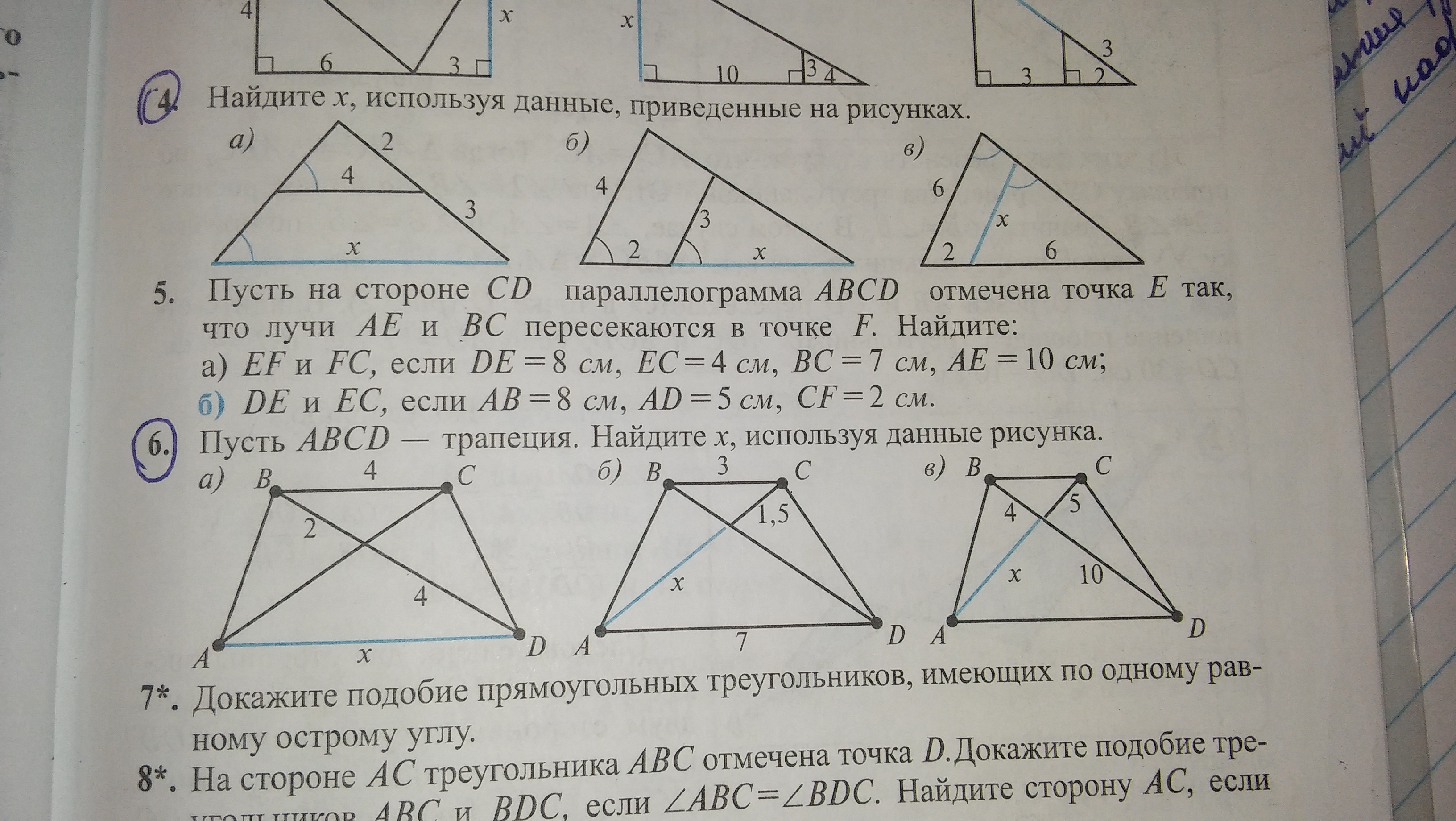 4в) 6/8=х/6 х=4.5
