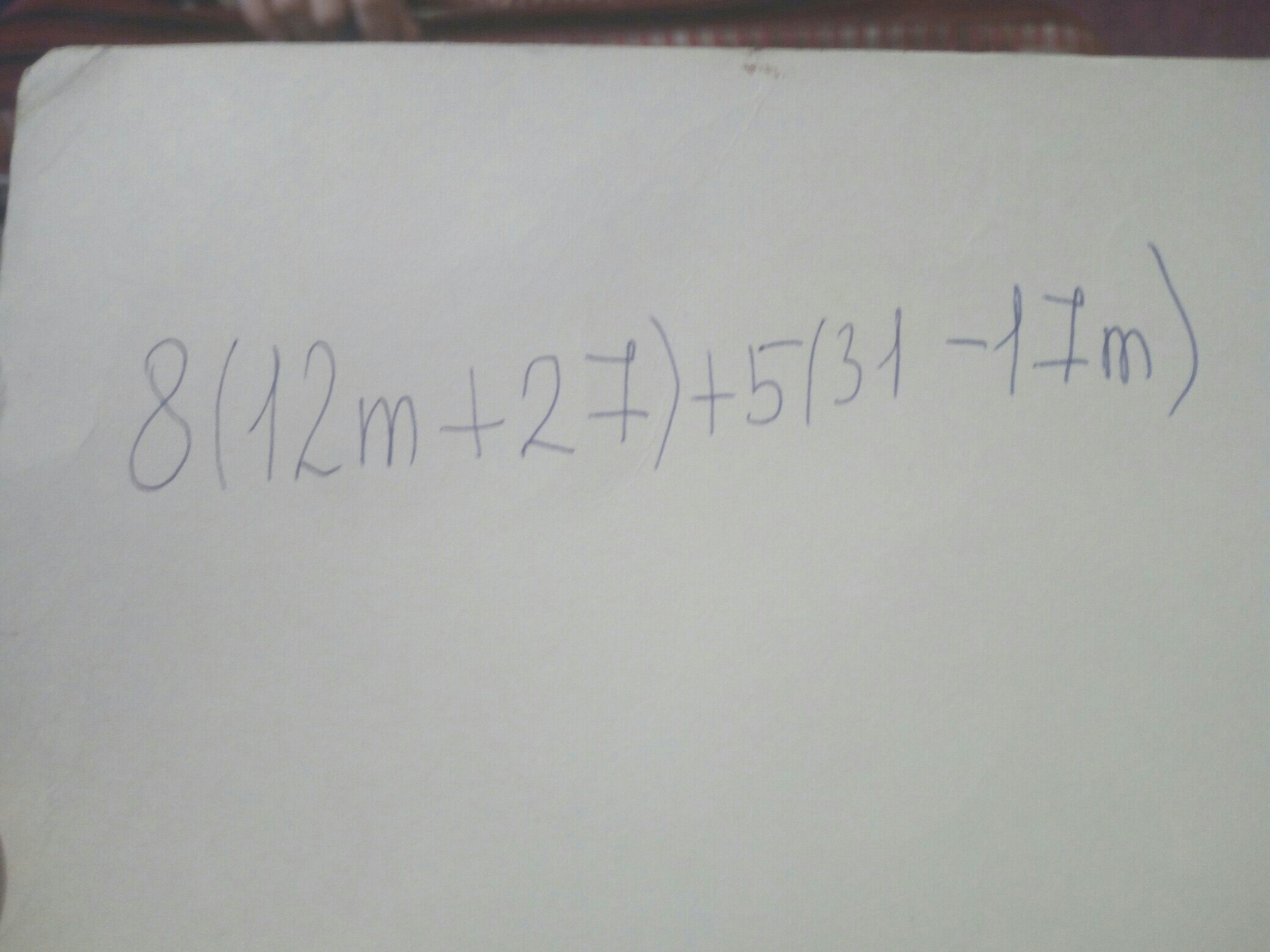 8(12m+27)+5(31-17m)=96m+216+155-85m=11m+371