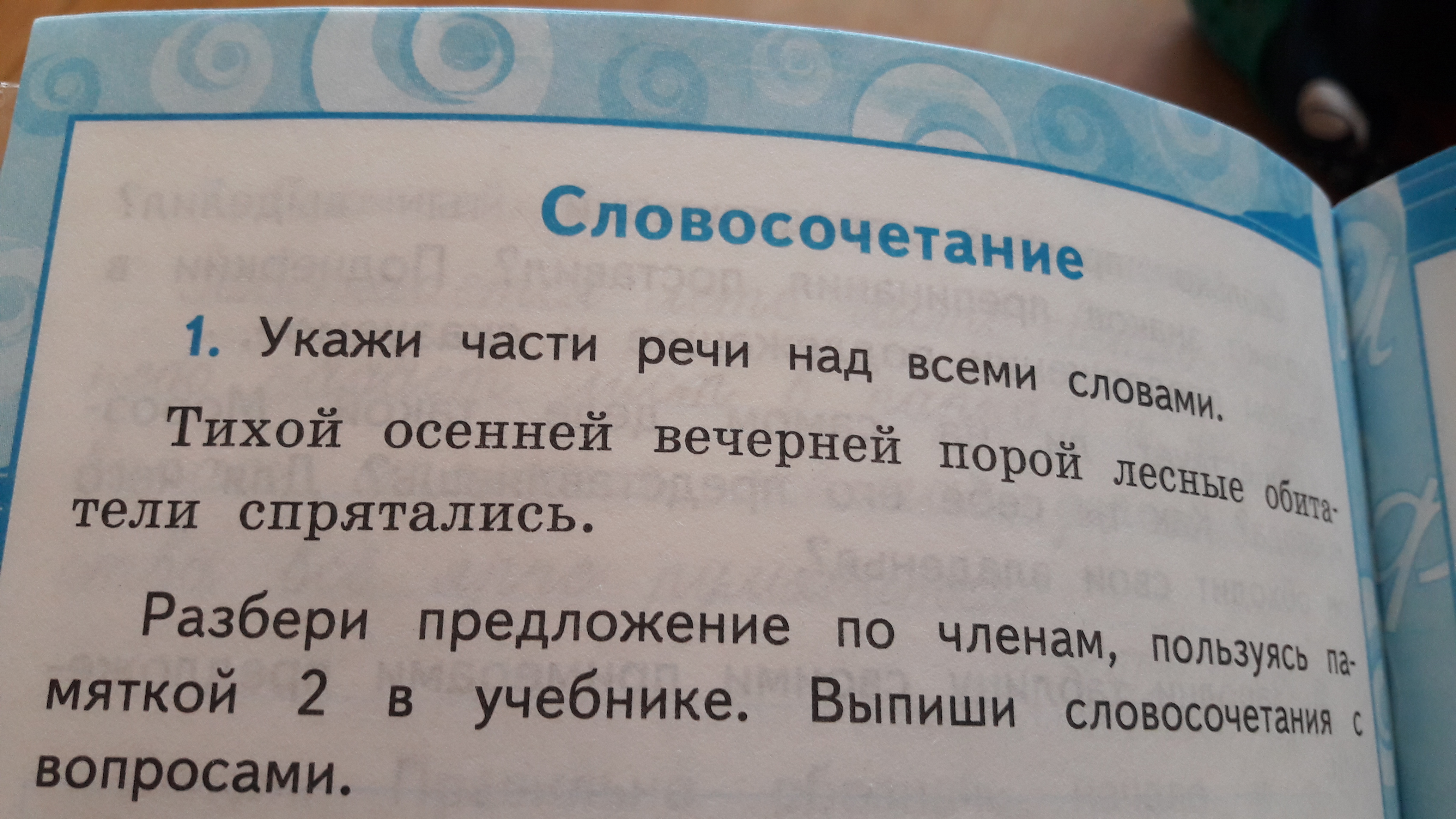 Разбери предложение по членам,пользуясь памяткой 2 в учебнике .выпиши словосочетания вопросами.