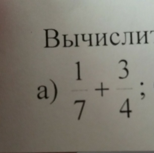 1/7 +3/4 Чтобы сложить эти дроби, нужно их привести к общему знаменателю. Общий знаменатель 28. Числитель увеличиваем пропорционально знаменателю. Получим 4/28 +21/28. После этого складываем числители и получаем ответ. Потом если числитель и знаменатель делятся на одну и ту же цифру - сокращаем дробь.