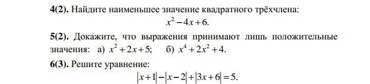 - x²-4x+6=(x-2)²+2- графиком явл.парабола,ветви вверх,вершина в т.А(2;2) min значение кв. трехчлена =2