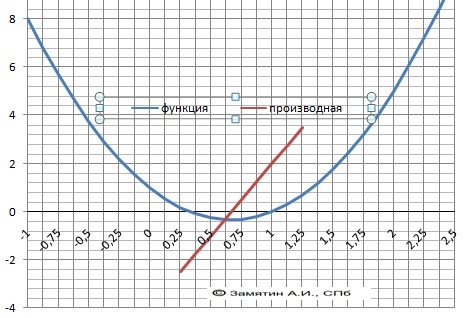 1. Точки пересечения с осью Х - корни функции - решаем квадратное уравнение. D=25,