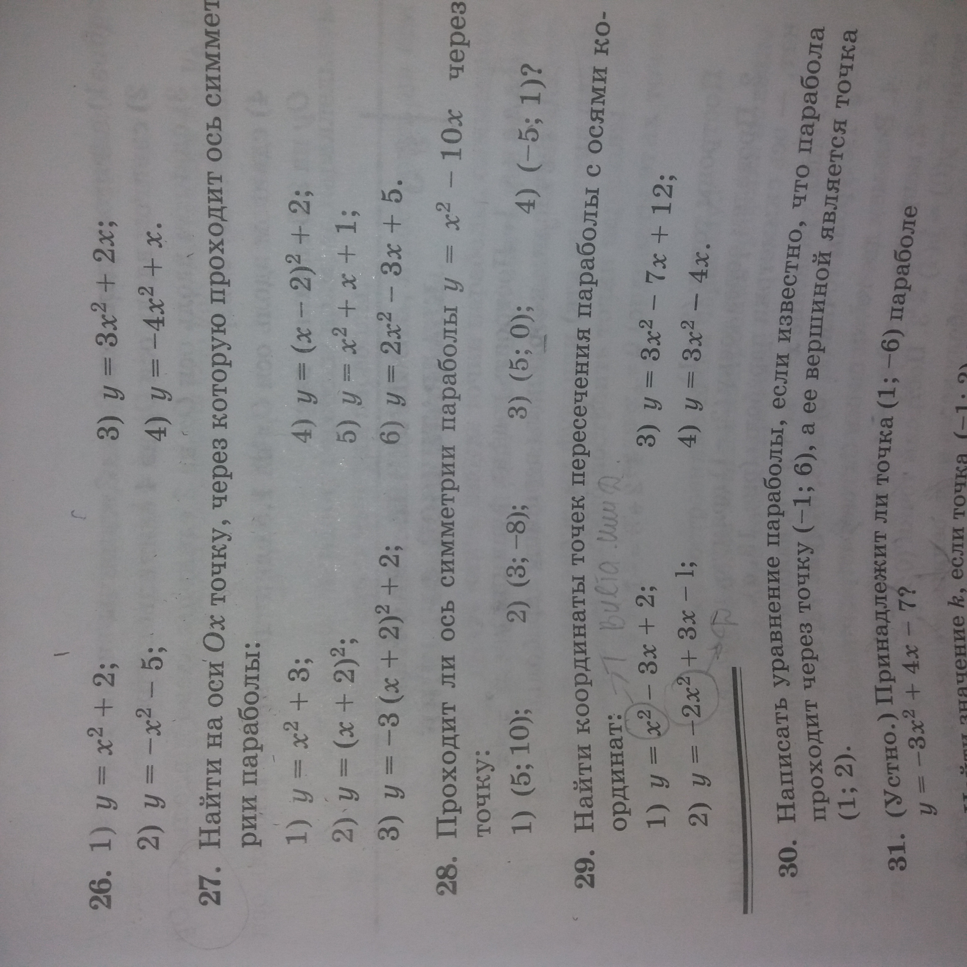 Помогите подалуйста с алгеброй не понимаю как это делать номер 26 найти координаты вершины параболы,и номер 27.пришлите фото пожалуйста прошу решите