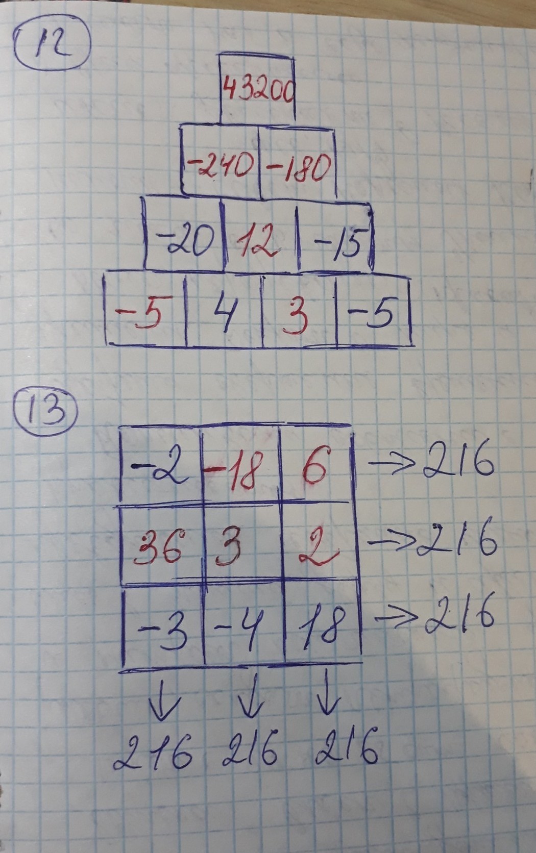 13) Запишите в пустые клетки (рис. 6) такие числа , чтобы их произведение в столбцах и строках равнялось 216 .