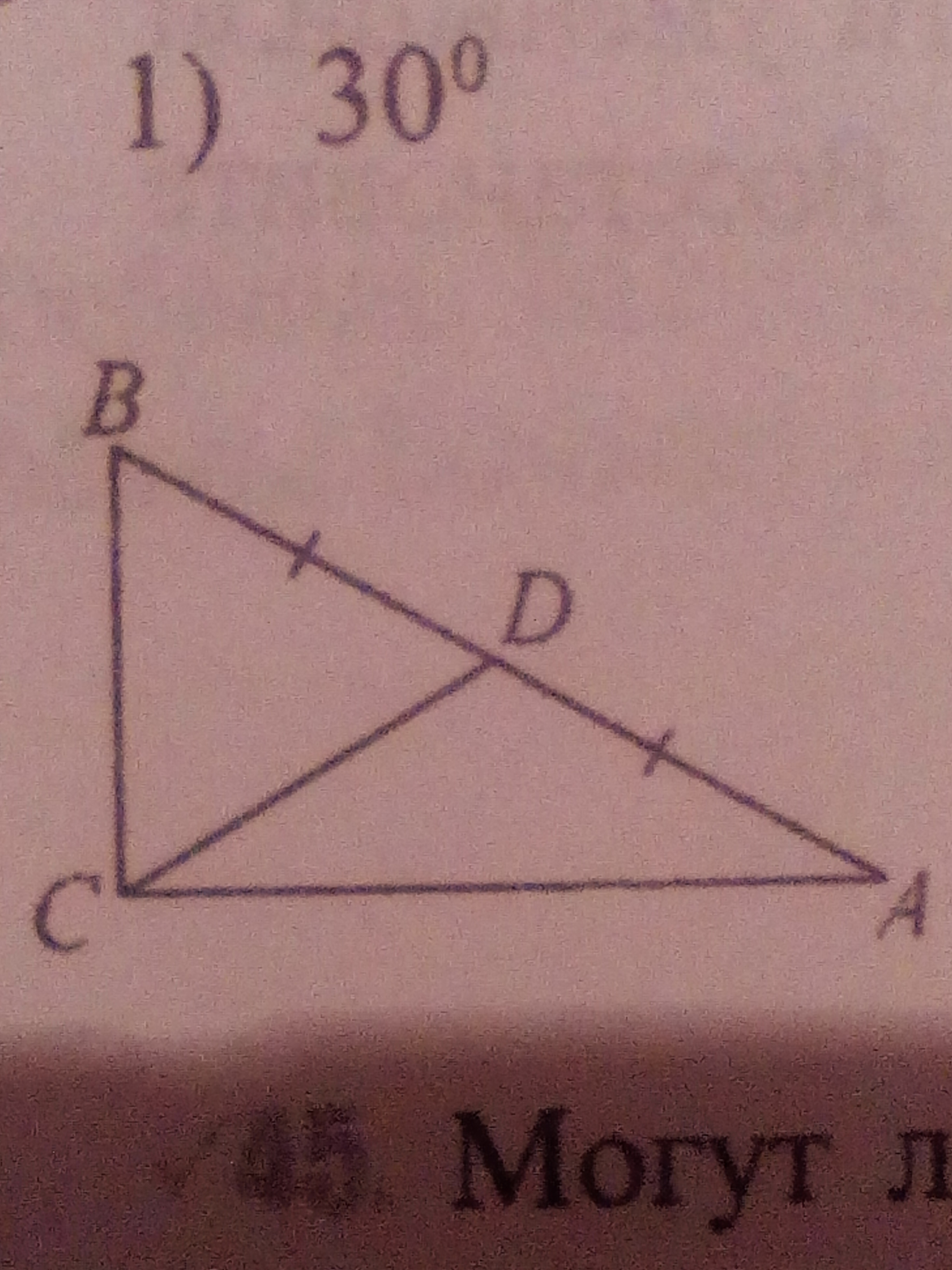 Решение: Т.к CD -медиана, следовательно она равна 0,5 гипотенузы, следовательно BD=AD=CD, следовательно треугольники ACD и BCD - равнобедренные, следовательно угол BAC= угол DCA= 20’