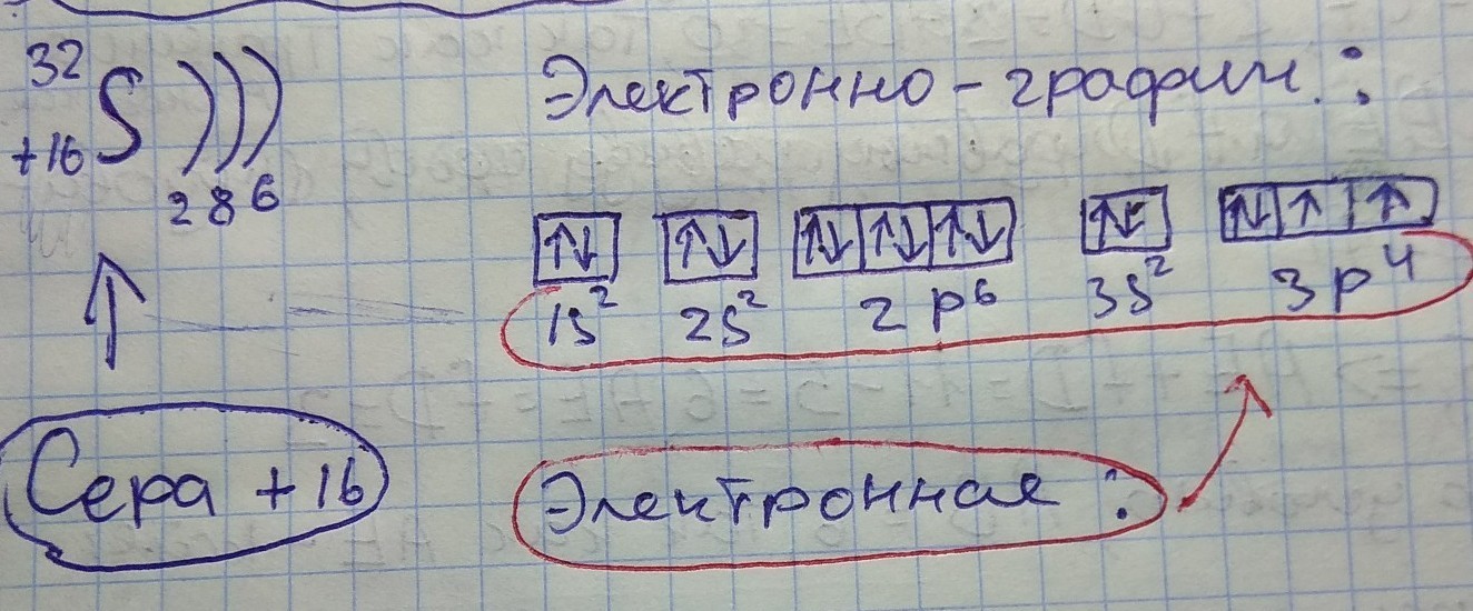 Запишите электронную конфигурацию и электронно-графическую формулу атома ядро которого имеет заряд + 16.