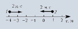 1. На рисунке показаны положения двух маленьких шариков в начальный момент времени и их скорости. Запишите уравнения движения этих тел. (рис 1)