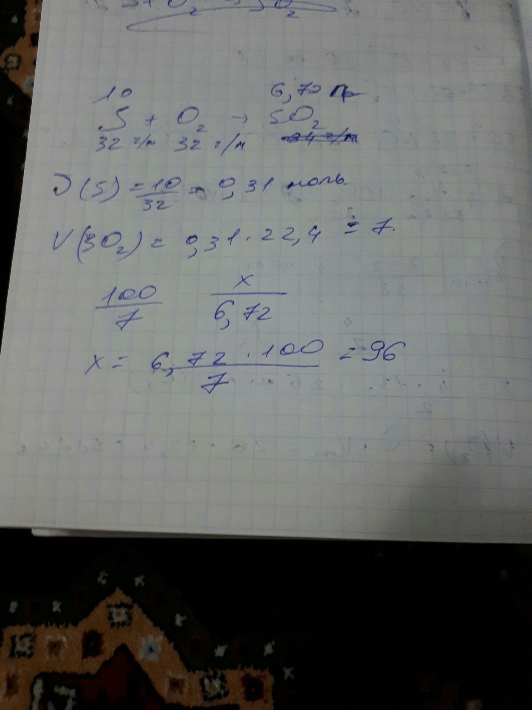 при сжигании 10 г серы получено 6,72 л оксида серы 4(SO2). Определите выход продукта реакции оксида серы 4(SO2)