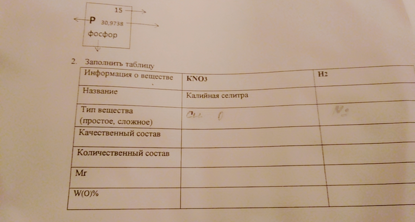 2 столбик водород; простое; водород; 2 атома водорода; 2; нет