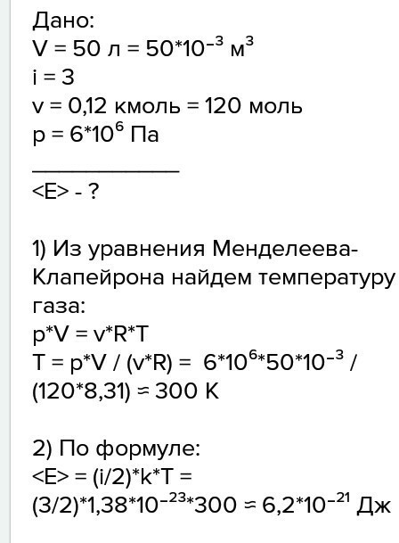 В баллоне ёмкостью 50 л находится 120 моль одноатомного идеального газа при давлении 6,0 МПа. Определить среднюю кинетическую энергию теплового движения молекул ГАЗА.СРОЧНО!