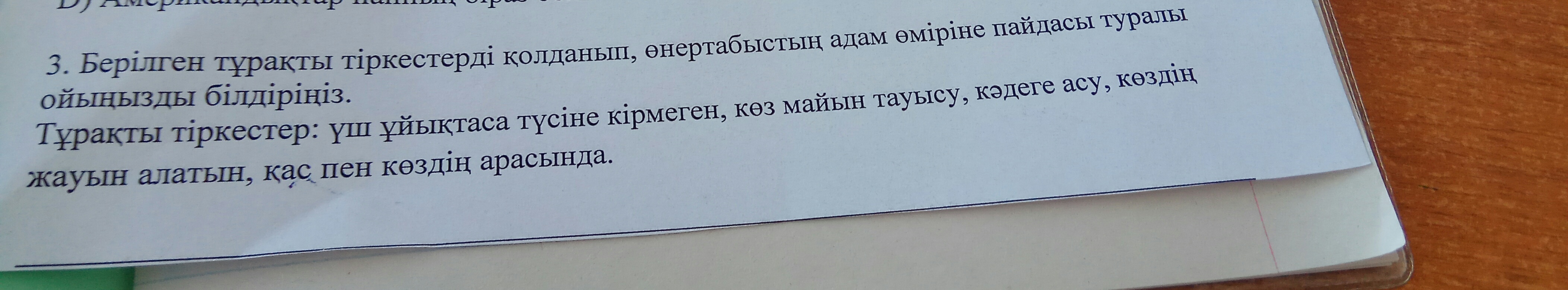 Өнертабыс адам өміріне пайдалы кәсіп.Үш ұйықтасада түсіне кірмеген затты ойлап табу.Көз майын тауысып қас пен көздің арасында бірнәрсе жасау.Ол көздің жауын алып,кәдеге аса өте кермет.