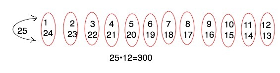 В сутках 24 часа. Каждый час в комнату влетало столько комаров, сколько прошло часов. В первый час - 1 комар, в последний, 24-ый час - 24 комара. Сумма первого и последнего количества комаров = 1+24=25, 2 и 23 - тоже 25 и т.д. . Всего таких пар в перечне часов 12. Всего комаров влетело 25•12=300.