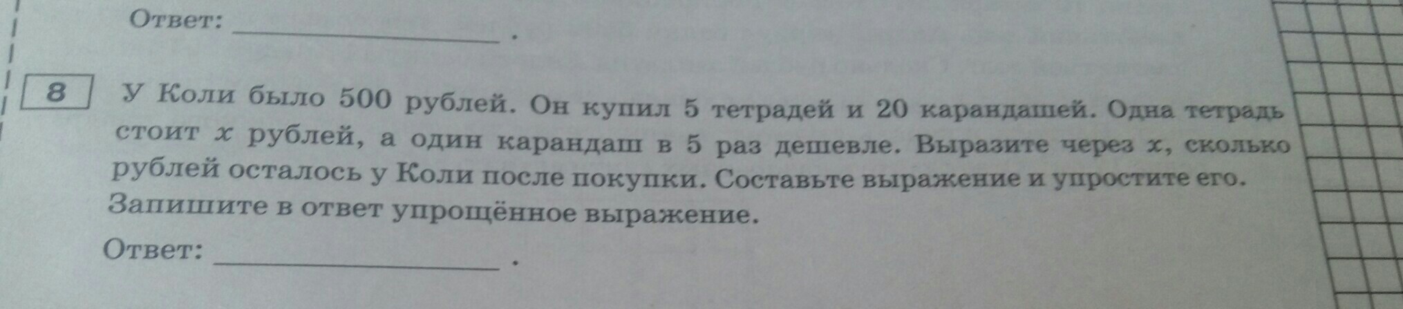 Ответ : 500-9х...