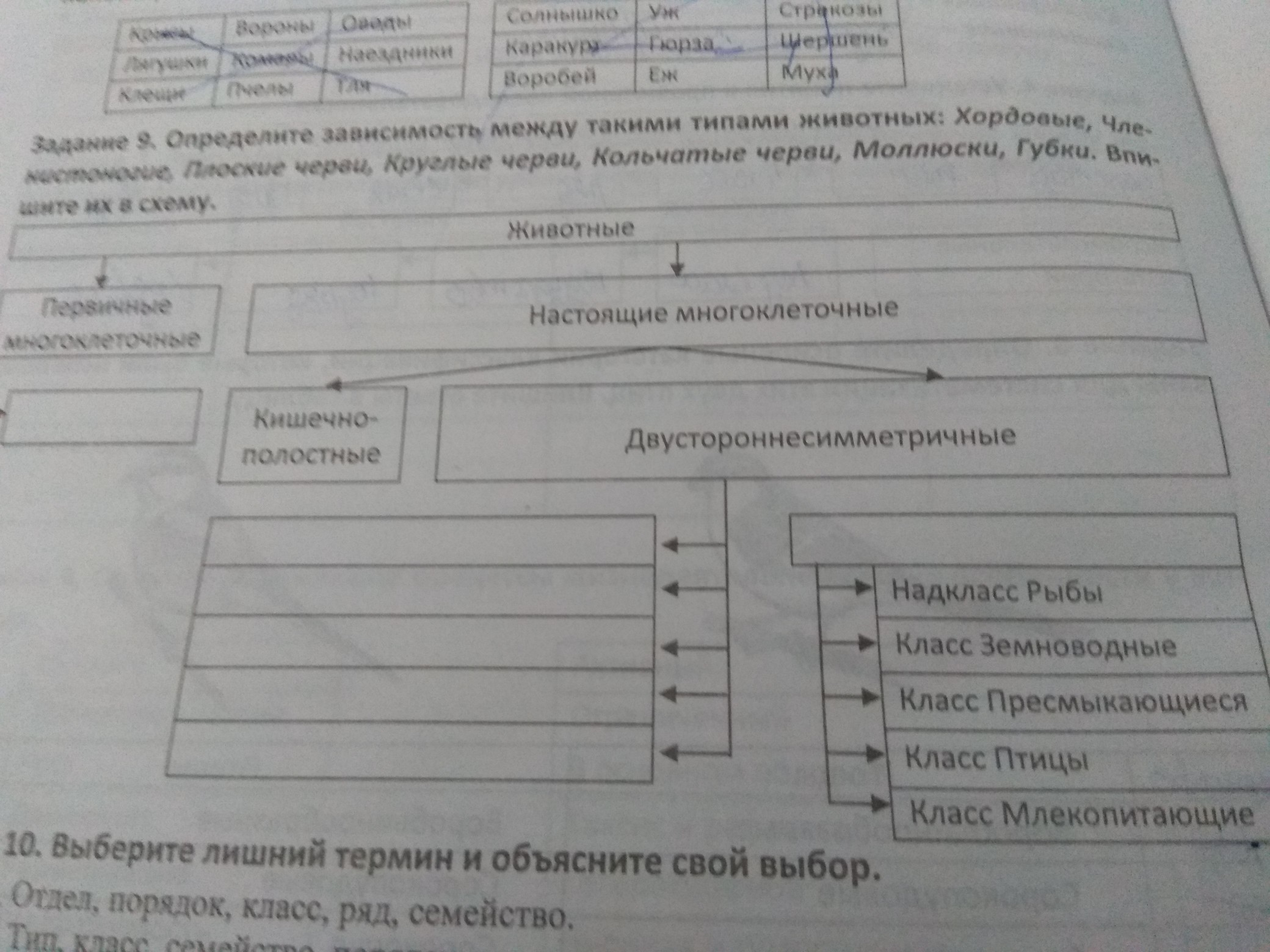 гы, я тоже биологию делаю точно такую, только на украинском языке, итак....слева направо колонки: