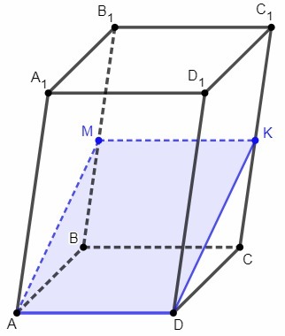 2) Секущая плоскость проходит через параллельные грани. MK||AD.
