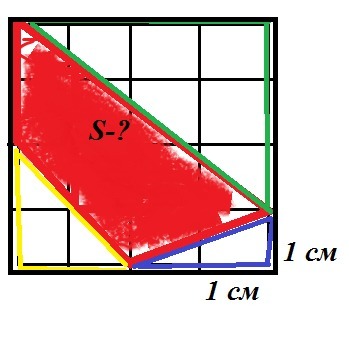 3) Площадь желтого треугольника = (2*2)/2 = 2 см в кв.