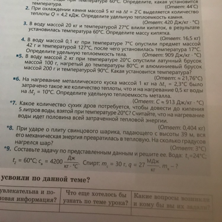 9) Найдите массу воды, которую можно нагреть от 24°С до 60°С на спиртовке, если сгорело 30 г спирта. Потери энергии не учитывать.