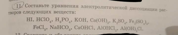 11) AlOHCl2= Al(3+) + OH(-) + 2Cl(-)