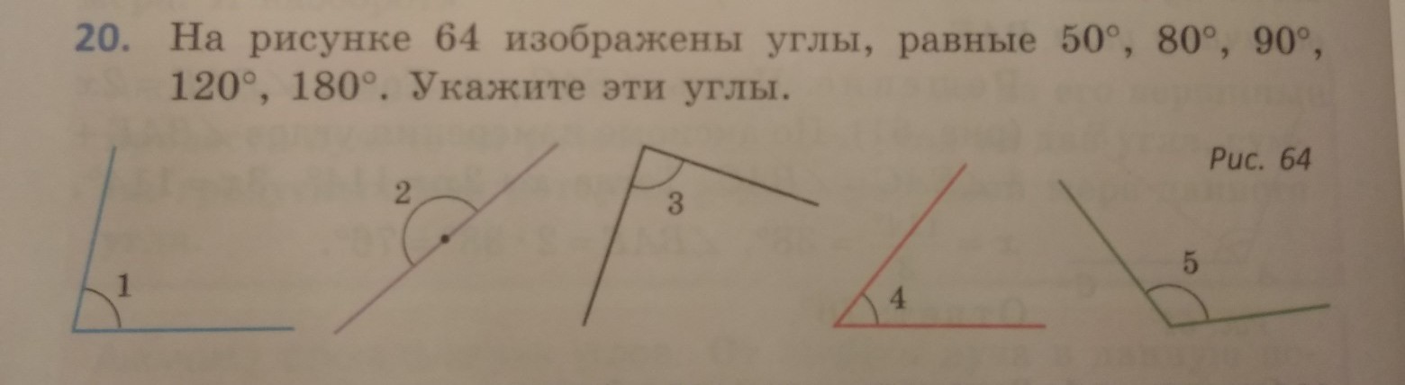 1 - 80°; 2 -180°, 3-90°, 4-50°, 5-120°