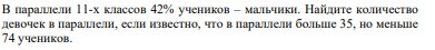 число девочек должно быть целым, и по условию, оно в интервале от 35 до 74, поэтому,