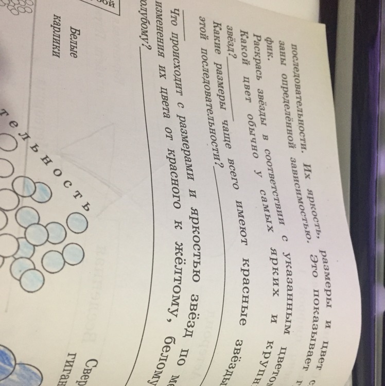 Ответ:у самых ярких-красный. Размер более 2 млн км(размер солнца 1.4).Их размер и яркость увеличивается, самые крупные это красные гиганты например VY Большого пса