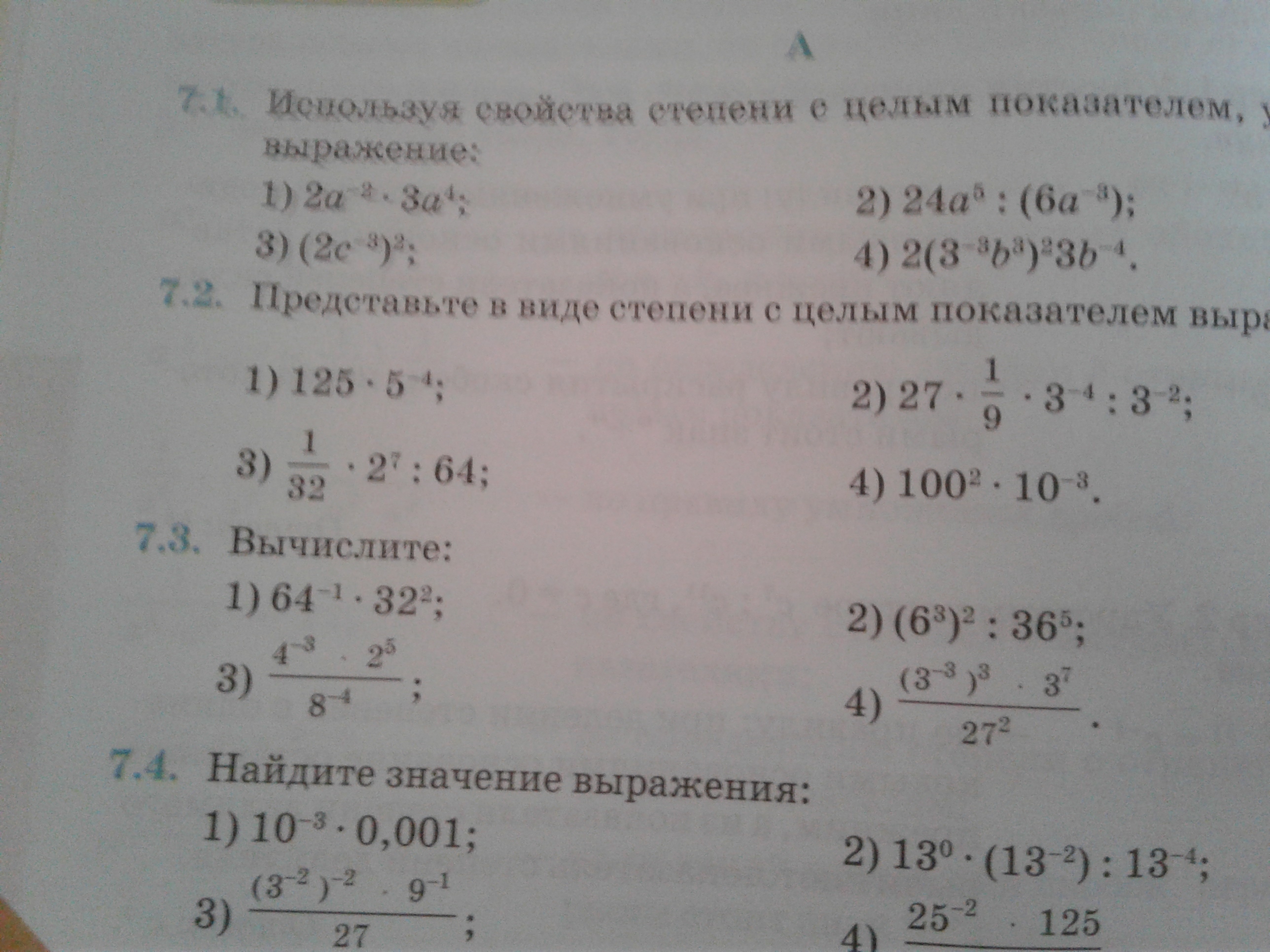 4) 3^-9×3^7/(3³)²=3^-2/3^6= 3^-8