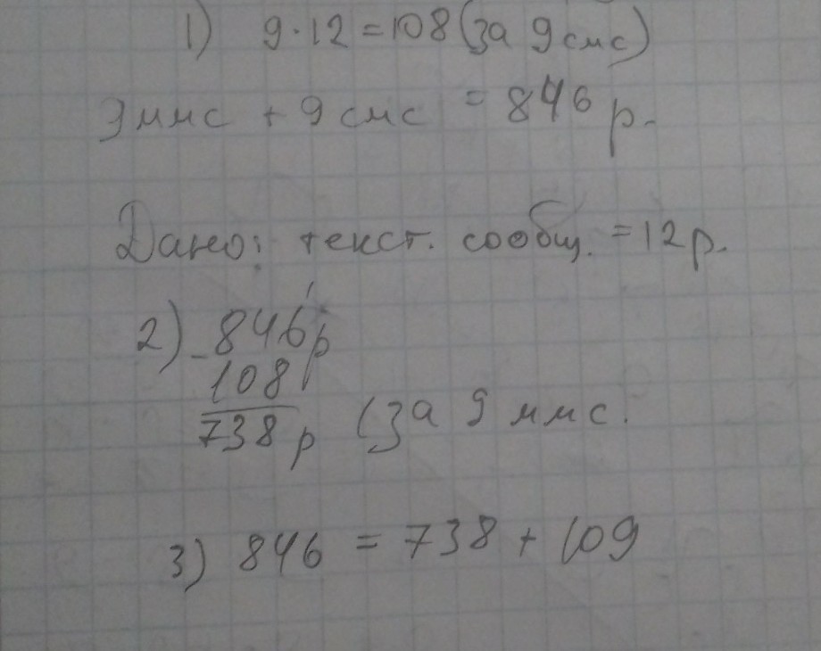 за 9 мультимедейных сообщений (ММС) в роуминге и столько же текстовых сообщений заплатилили 846 р. сколько стоит мультимедейное сообщение в роуминге, если текстовое сообщение стоит 12 рублей?