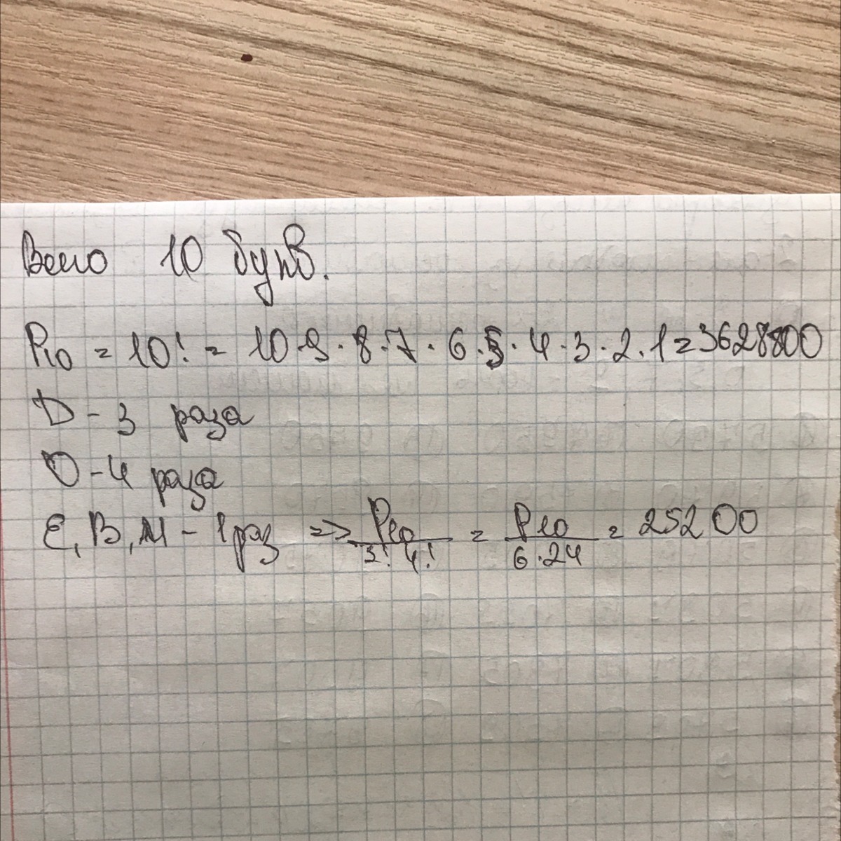 P=10!/(3!*4!*1!*1!*1!)=25 200 разных слов