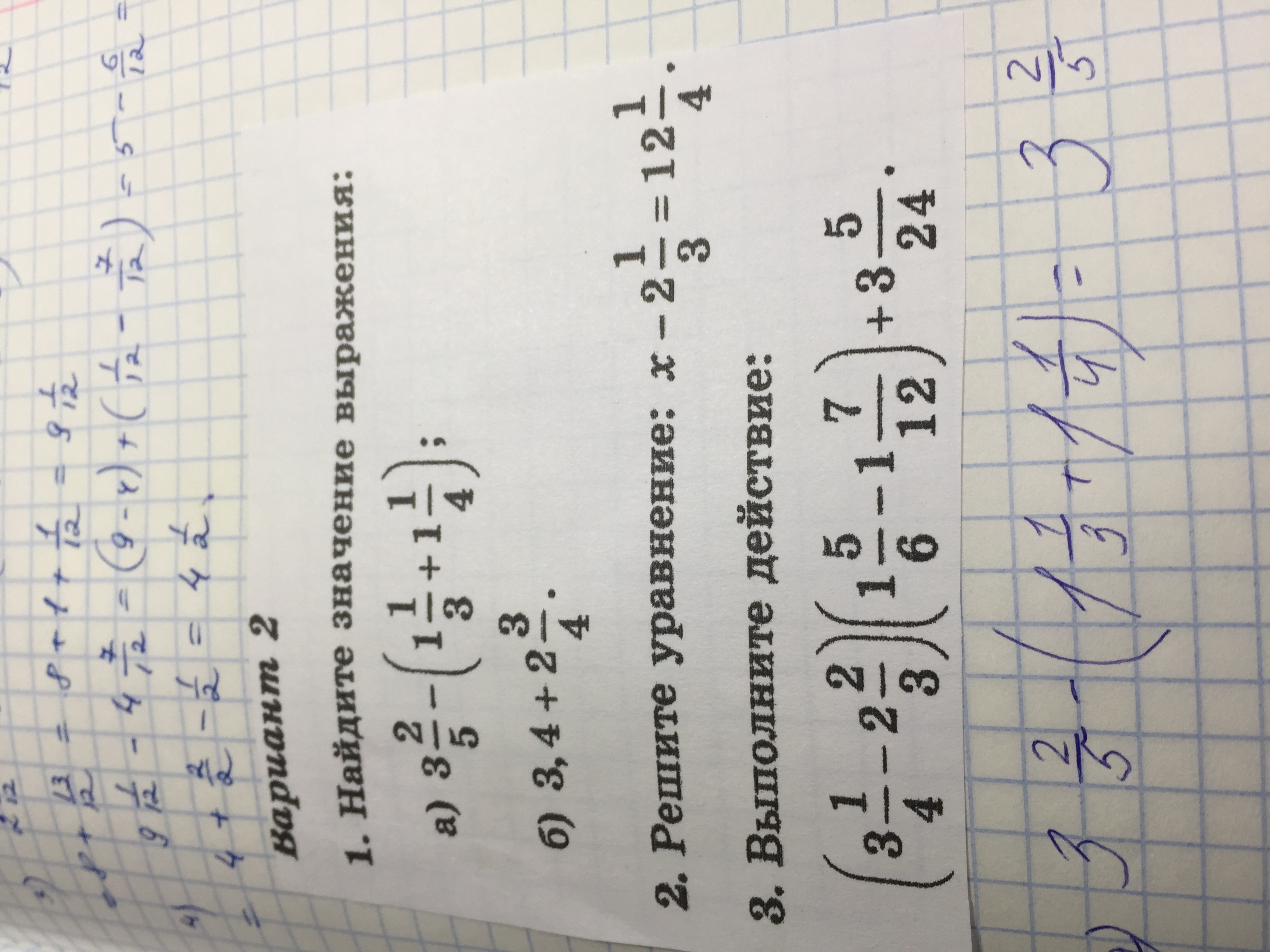 а) 3 целых 2/5 - ( 1 целая 1/3 + 1 целая 1/4)