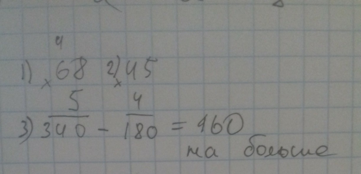 помогите решить На выстовки в 5 залах по 68 фотографии в каждом, а в 4 залах по 45 фото. На сколько больше фотографий в пяти залах,чем в четырёх залах?