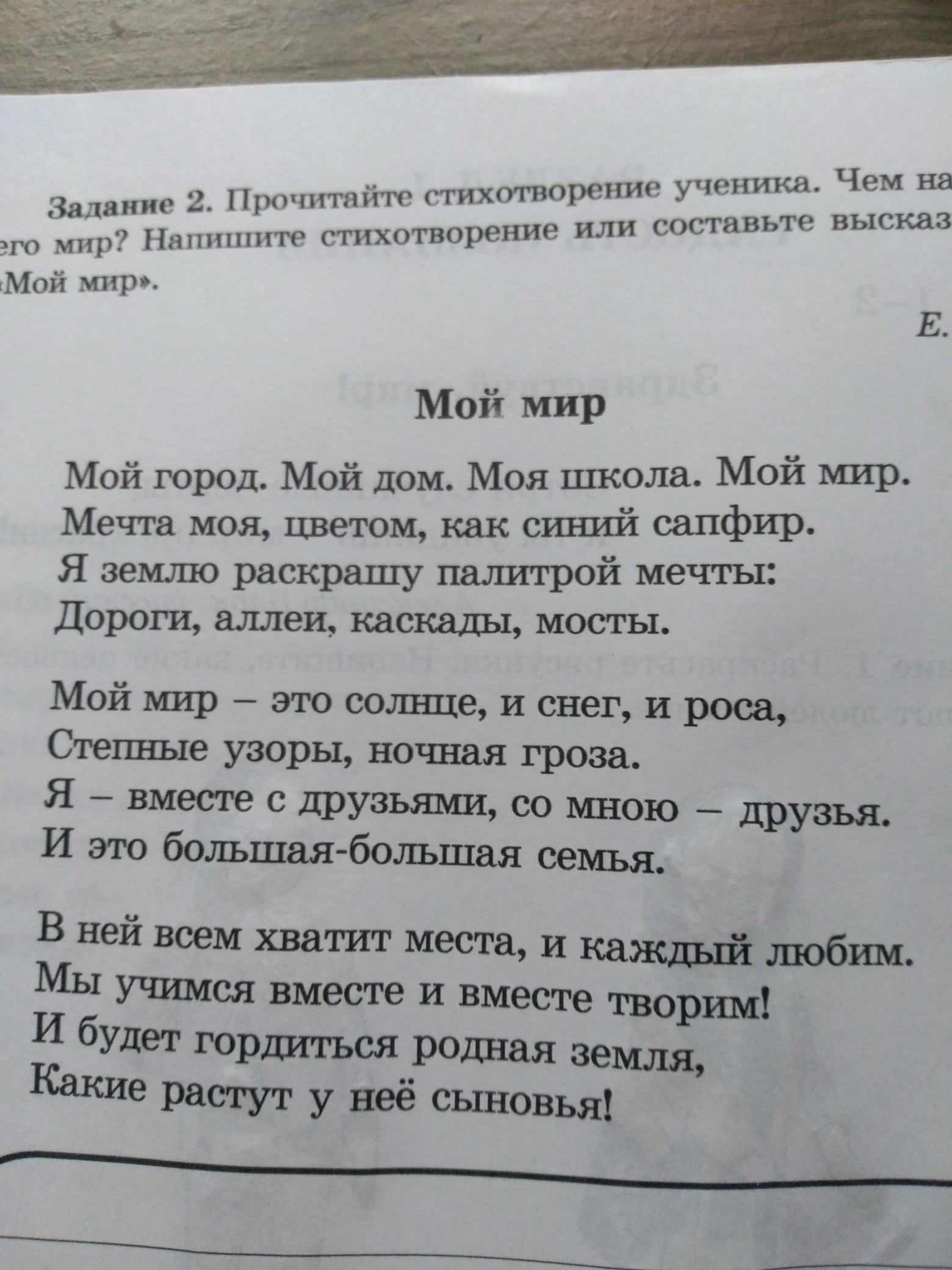 прочитай стихотворение ученика. Чём наполнен его мир? Напишите стихотворение или составте высказывание "Мой мир"